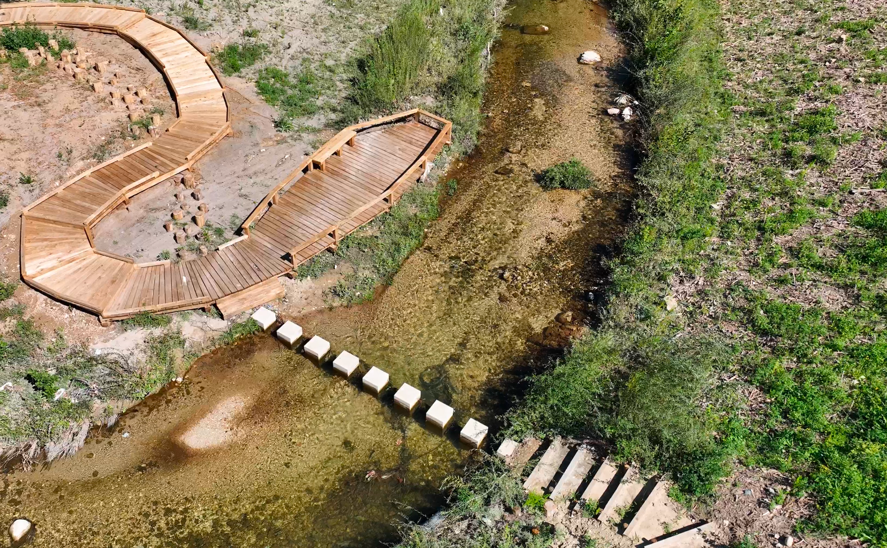 - Revitaliser le fleuve et sa biodiversité : Création d’un méandre et adoucissement des berges de l’Huveaune et des Lignières sur 200 mètres, générant des milieux propices à la biodiversité et aux échanges avec la nappe souterraine. Végétalisation avec près de 10 000 plants installés sur les berges et dans le parc.