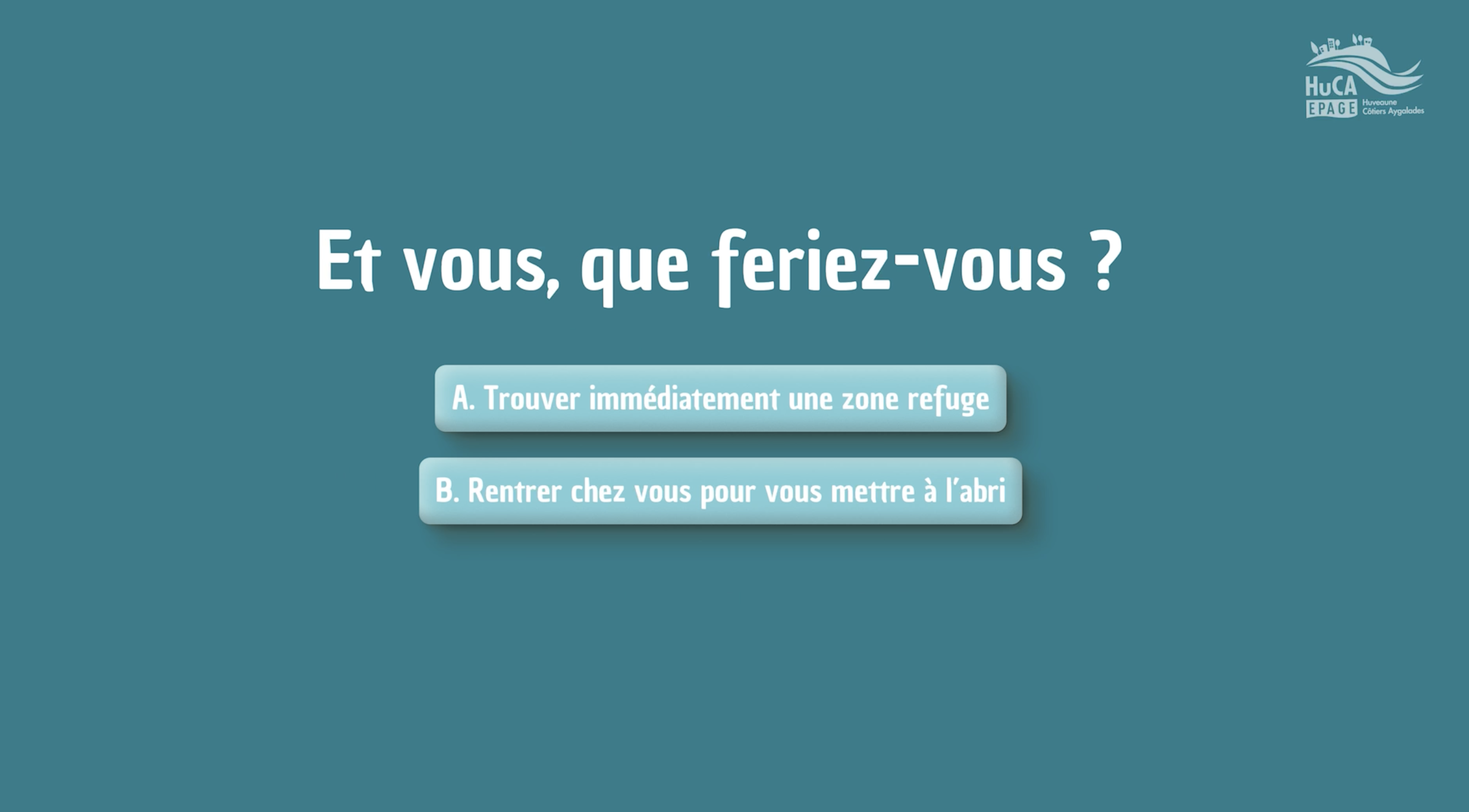 L’EPAGE HuCA est heureux de présenter son film interactif « Vivre avec le risque inondation », un outil novateur créé pour sensibiliser le public aux risques d’inondation et l’inviter à se projeter dans une meilleure analyse de la situation à laquelle il peut être confronté, en vue d’une action préventive et d’une réaction adaptée.